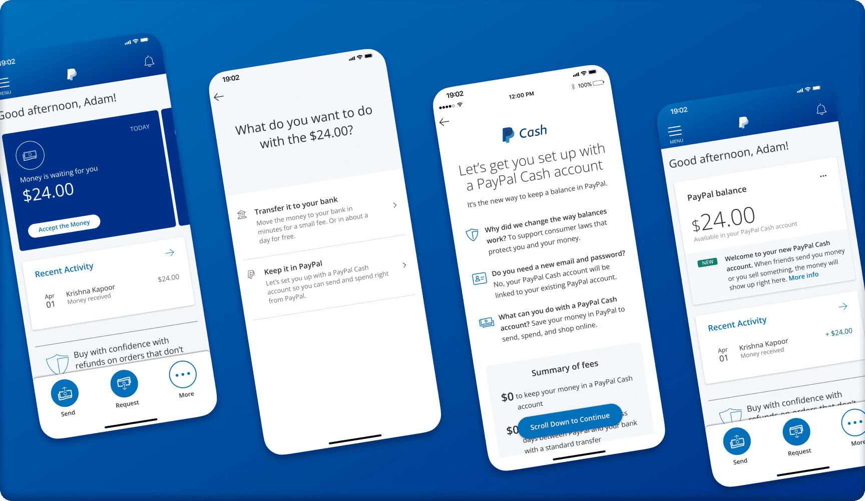 In response to a new CFPB law, PayPal decided to require the customer to opt into creating a subaccount to hold a balance. Leading multiple rounds of usability and AB testing, and iterating continuously, click-thru-rates were improved by +20% (relative).