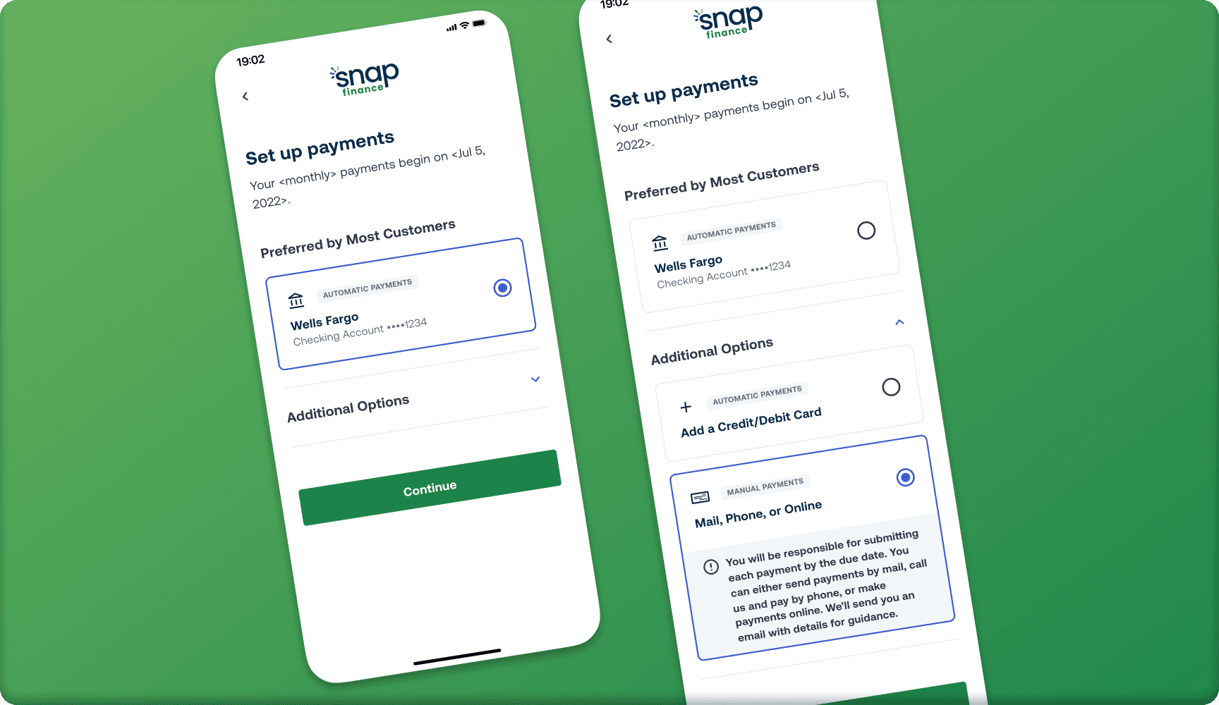 The existing process to set up a payment plan resulted in many missed first payments and loan defaults. The redesign goals were to make the options clear, encourage an increased selection of auto payments (lower missed first payments), and adhere to strict regulations. Live experimentation resulted in increased auto selections and decreased first payment default by 15.6-20%, benefitting both the customer and the business.