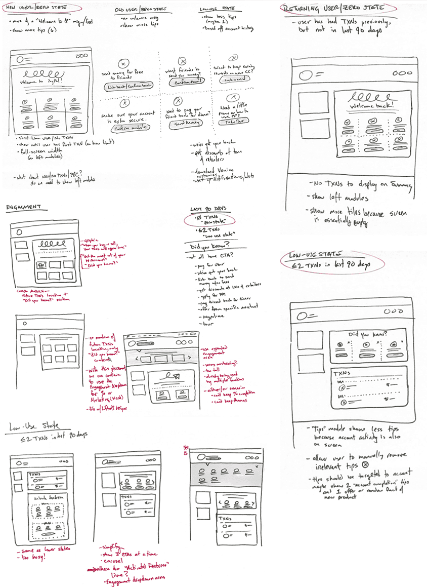 As a global leader in the financial services industry, PayPal had nearly 300M customers in 2018. With a growing portfolio of innovative new products, the previous “one size fits all” approach to the Home was starting to burst at the seams, causing a bloated and unstructured customer experience, while lacking the ability to scale and promote new products, features, and actions.